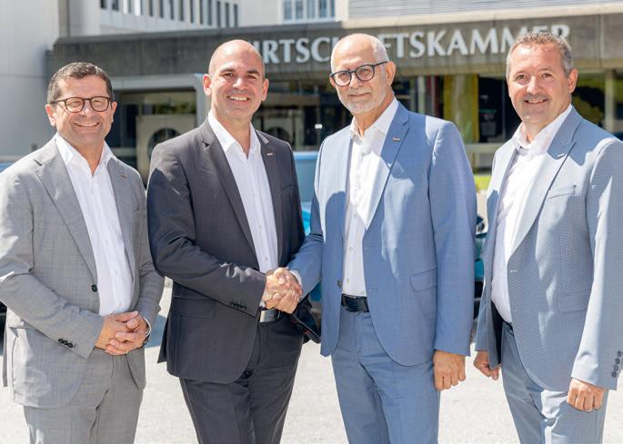 ner. In der Steiermark verzeichnet man in Sachen Elektro-Fahrzeuge ein sattes Minus von 11,4 Prozent. Die Gr ünde sind vielfältig: „Die Kunden warten derzeit ab und schauen, wie sich die EU-Wahl und die Nationalratswahl auf die k ünftige Elektromobilität auswirken wird. So ist noch nicht abzusehen, ob das Verbrenner-Verbot ab 2035 auch halten wird“, so Edelsbrunner. Ein weiterer Grund f ür den Rückgang der Verkaufszahlen ist, dass die Förderung f ür Unternehmen am 1. Jänner 2023 eingestellt wurde. Am Foto (v. l.): Landesgremium Fahrzeughandel in der WKO Steiermark: Gerald Auer, Peter Jagersberger, Klaus Edelsbrunner und Thomas Marichhofer