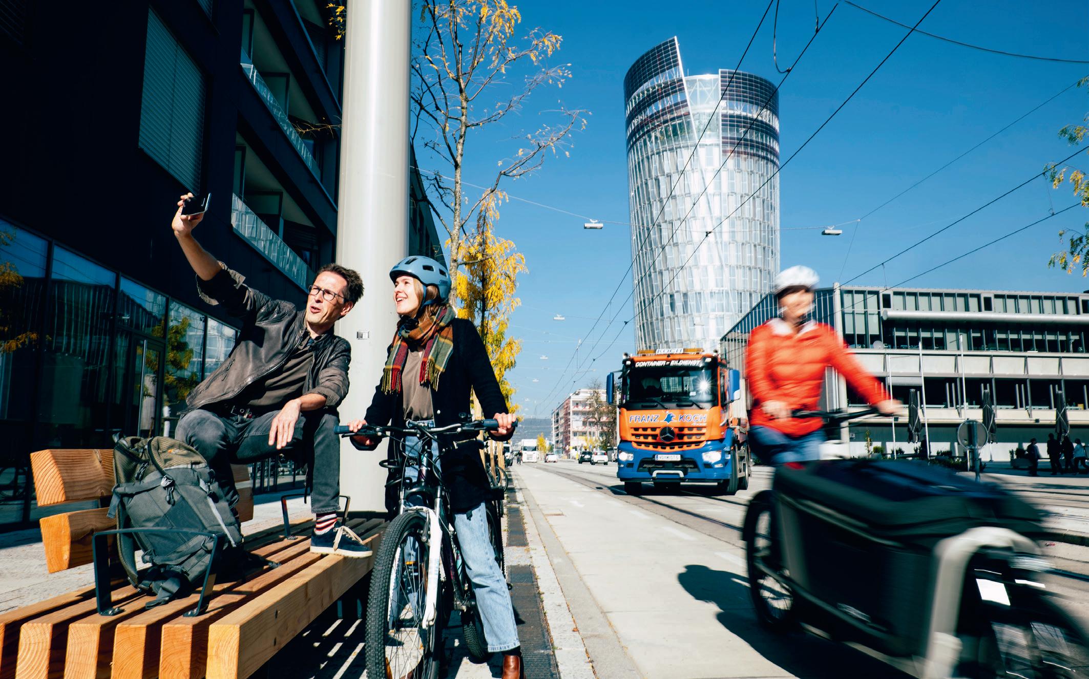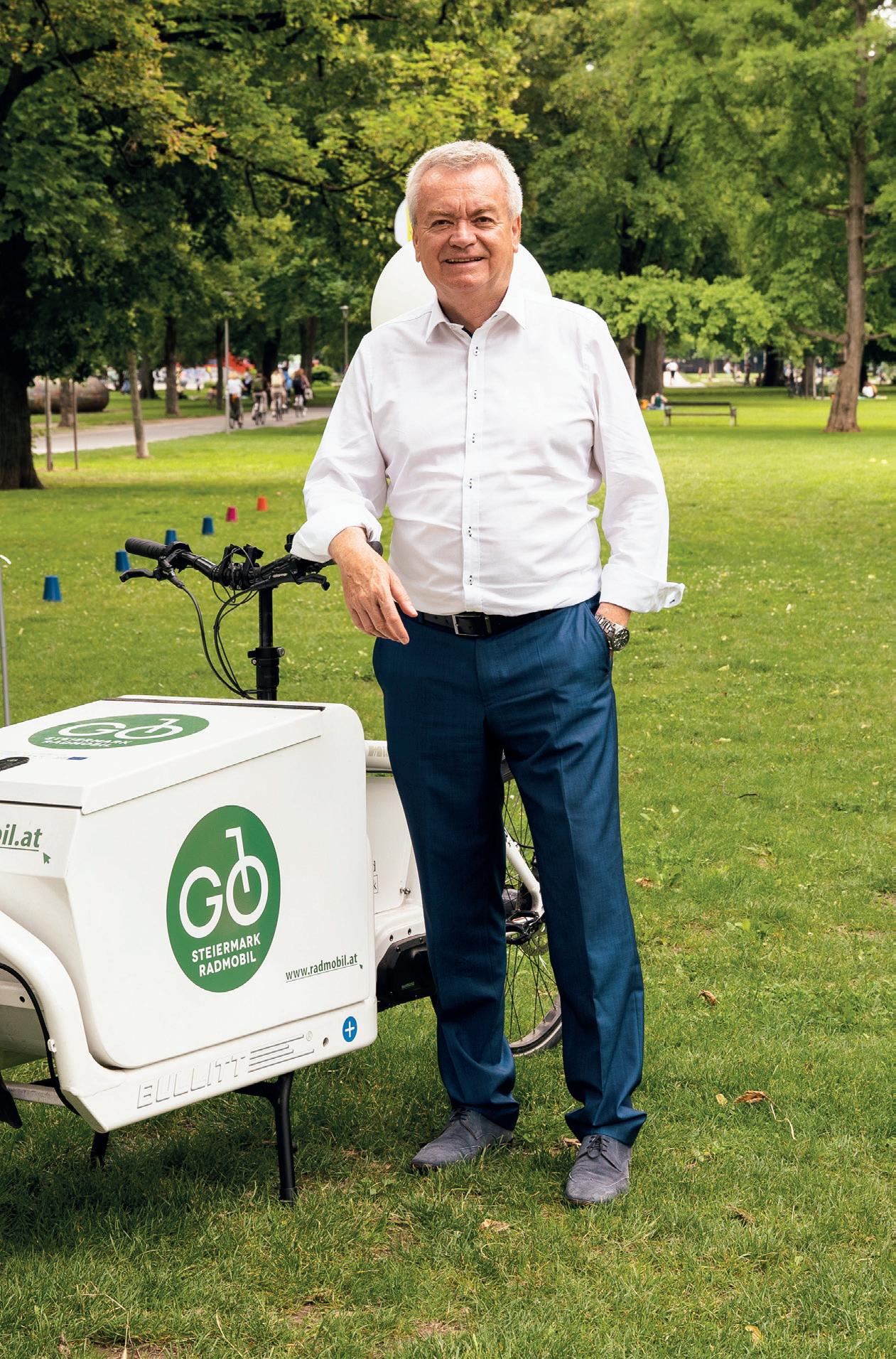Franz P rettenthaler: Die klimafreundlichste und auch die gesündeste Form der Fortbewegung ist es, zu Fuß zu gehen oder mit dem Fahrrad zu fahren. Diese sogenannte aktive Mobilität hat insbesondere in den Städten bereits stark zugenommen und muss im Hinblick auf die Verkehrswende noch weiter an Bedeutung gewinnen. Ein wichtiger Trend im Bereich Individualverkehr ist die Intermodalität. Das bedeutet, dass eine Kette aus unterschiedlichen Verkehrsmitteln zum Ziel führt – etwa Fahrrad, Bahn und innerstädtischer Öffiverkehr oder Pkw und öffentliche Verkehrsmittel. Beim motorisierten Ver-