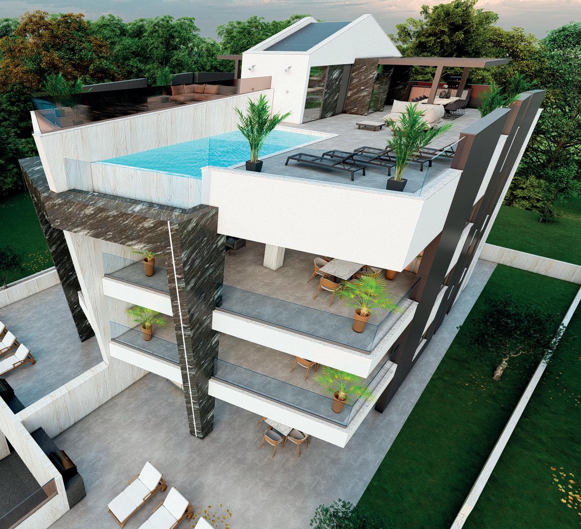 4 Luxus-Apartments sowie 2 Luxus-Penthäuser, 12 Tiefgaragen Parkplätze, 4 Pools und 2 Whirlpools, in erster Meerreihe in Zadar, Kroatien.