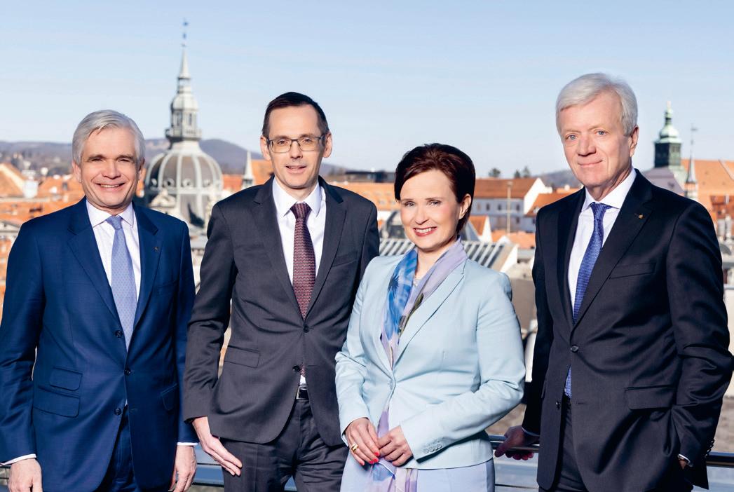 mensstrategie. Der erfolgreiche Weg und die positive Entwicklung der Steiermärkische Bank und Sparkassen AG sind Beleg für die hervorragende Leistung des Vorstandes und aller Mitarbeiter:innen“, betont Friedrich Santner, Aufsichtsratsvorsitzender der Steiermärkische Bank und Sparkassen AG. Foto (v. l.): G. Bucher, Vorstandsmitglied Steiermärkische Sparkasse, O. Kröpfl, Vorstandsmitglied Steiermärkische Sparkasse, W. Seidl, Vorstandsmitglied Steiermärkische Sparkasse, G. Fabisch, Vorstandsvorsitzender Steiermärkische Sparkasse.