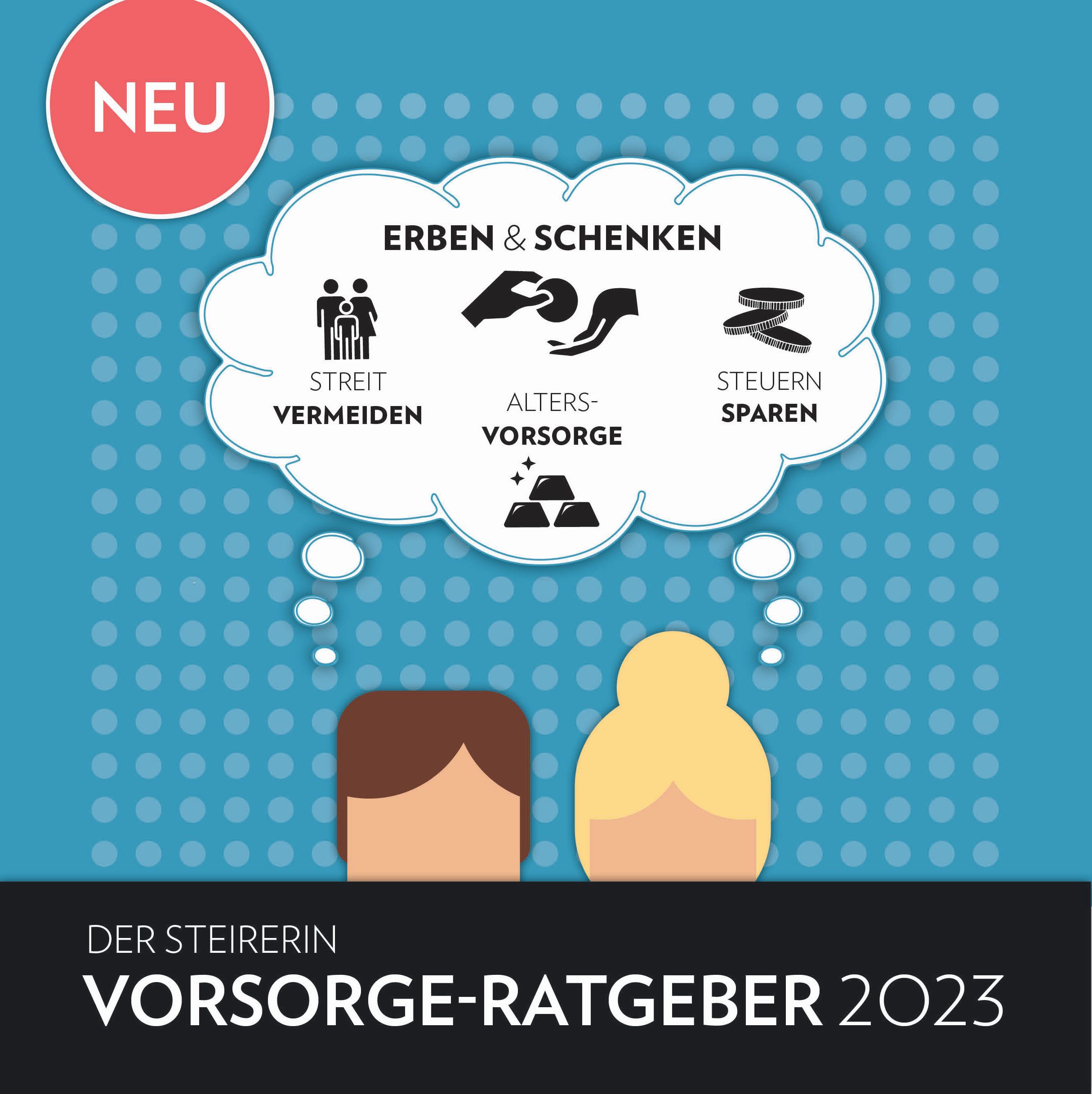 Und genau das wollen wir in Zusammenarbeit mit Profis wie der Notariatskammer für Steiermark sowie der Kammer der Steuerberater und Wirtschaftsprüfer Steiermark mit diesem Ratgeber bieten. Wir geben Antworten auf Fragen wie „Welche Steuern fallen bei einer Schenkung an?“, „Welche Form muss ein Testament haben, um rechtlich gültig zu sein?“ und „Was muss man bei der finanziellen Vorsorge beachten?“. Zusätzlich finden Sie die wichtigsten Adressen von steirischen Experten angeführt, um einen Überblick über die richtigen Ansprechpartner zu haben.