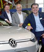 WErfreut. Autohändler Günther Krainer (Mitte) mit Bereichsleiter Charly Platzer und Prokurist Almir Slamnik