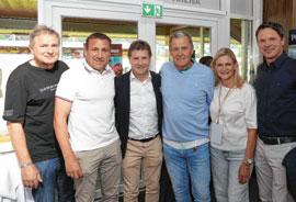 Cooles Quartett. Eiskönig Charly (links) und Sohn Swen (rechts) Temmel mit Konzertveranstalter Klaus Leutgeb und Fußball-Trainer Franco Foda