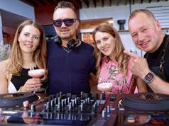 Parkhotel. Direktor Christopher Zavodnik, Küchenchef David Bachmann, Serviceleiter Erwin Schurtl und DJ Sunky
