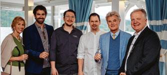 Maria, Swen und Charly Temmel mit Küchenchef Sebastian Hurnaus, Executive Chef de Cuisine Helmut Leitner und Direktor Roland Hirtenfelder
