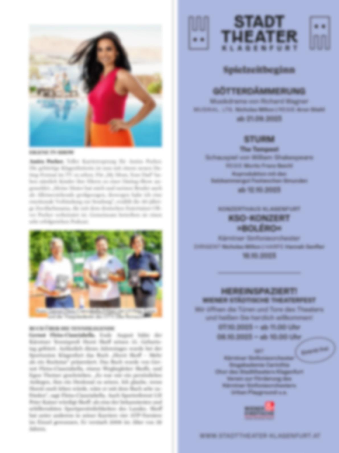 Wir hatten kürzlich einen Workshop mit dem Team der anderen Chefredakteurinnen aus unserer Magazingruppe „Bundesländerinnen“. Die Aufgabenstellung war: Das Magazin ist eine Frau und beschreibe diese in einem Satz. Also machte ich mir Gedanken über den Kärntner MONAT (ja, d e r MONAT). Und mir fiel ein Wort ein, das im Hinblick auf die aktuelle Ausgabe tre ender nicht sein kann: eine Insiderin. Denn zum einen blickt der MONAT stets hinter die Kulissen, deckt Dinge auf – und zum anderen serviert der MONAT Ausgabe für Ausgabe kommende Veranstaltungen, die man nicht versäumen sollte. Darüber hinaus ist „die Insiderin“ – in der Gestalt von Szenefotograf Hannes Krainz – auf so gut wie jeder namhaften Veranstaltung und bringt Sie – sowohl online als auch im Magazin – mitten ins Geschehen.