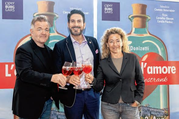 Ideenreich, unkonventionell, fantastisch, atemberaubend. Diesen Superlativen begegnet man, wenn die gemeinsame Regiearbeit des Künstlerehepaares Carolin Pienkos und Cornelius Obonya rezensiert wird. Ob bei der „Fledermaus“ von Johann Strauss an der Mailänder Scala 2018 oder bei den Mozart-Opern „Die Zauberflöte“, 2019 im Steinbruch St. Margarethen, und „Bastien und Bastienne“ beim HerbstgoldFestival 2022 im Schloss Esterházy. In der aktuellen Erö nungsinszenierung von Gaetano Donizettis „Liebestrank“ geht es nun, wie bei „Tristan und Isolde“, um ein Gebräu, welches Liebende zusammenbringen soll.
