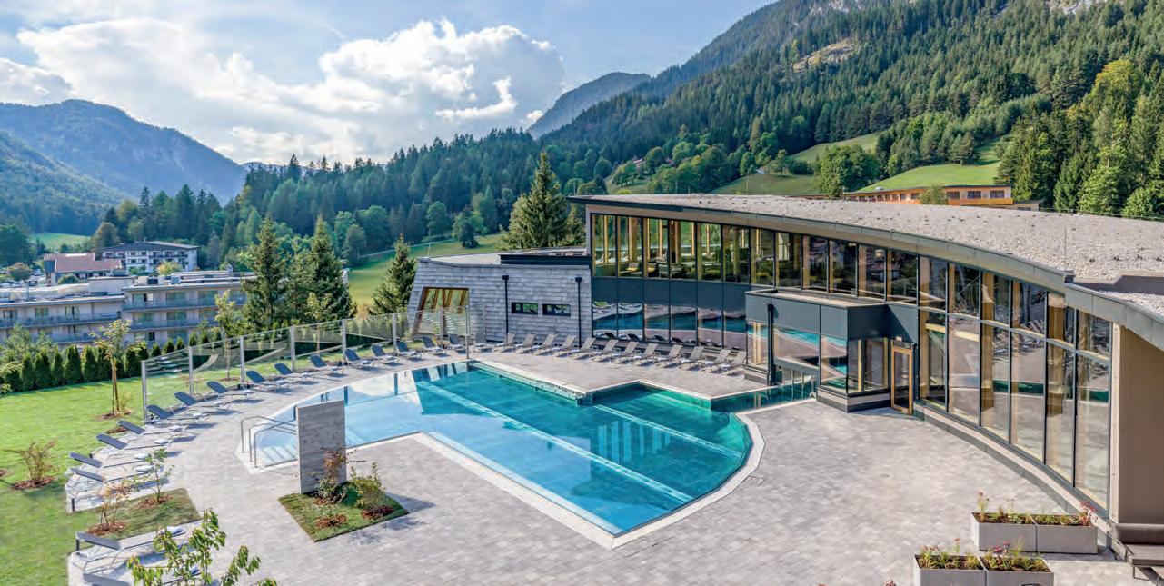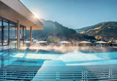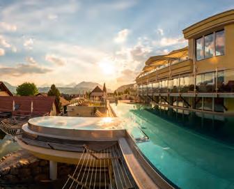 „Wellness deluxe“ eröffnet sich im 7.000 Quadratmeter großen EDELWEISS Mountain Spa mit zwei Außenpools, verschiedenen Saunen und separaten Bereichen für Familien und Erwachsene. Ein IndoorWasserpark mit 5 Wasserrutschen sorgt für Unterhal-
