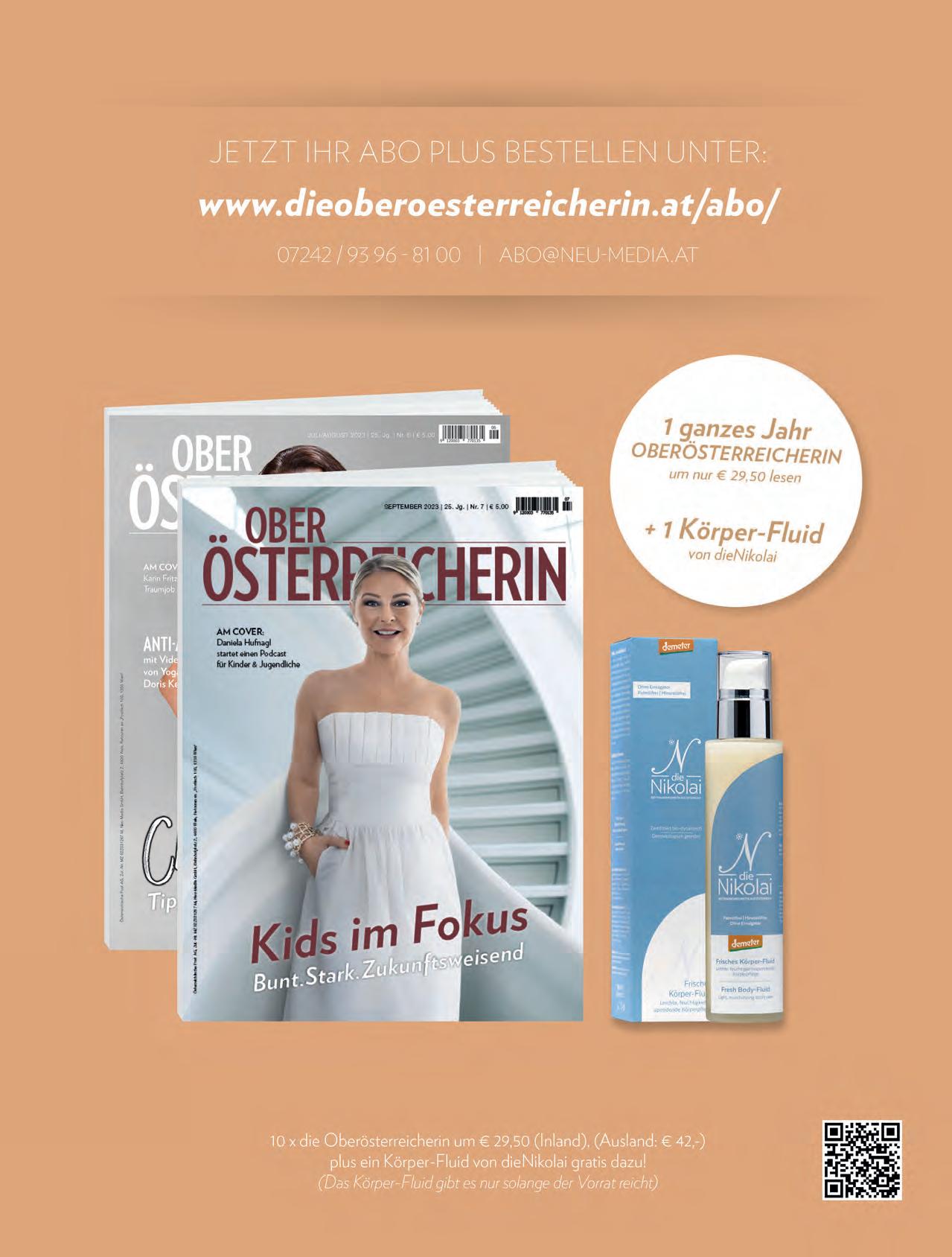 Österreichische Post AG, Zul.-Nr. MZ 02Z031267 M, Neu-Media GmbH, Bahnhofplatz 2, 4600 Wels, Retouren an „Postfach 100, 1350 Wien“ SEPTEMBER 2023 | 25. Jg. | Nr. 7 | € 5,00 9120003770135 07 AM COVER: Daniela Hufnagl startet einen Podcast für Kinder & Jugendliche Kids