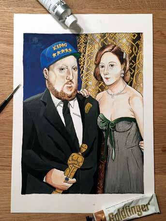Würde Heinrich VIII. – das war der mit den sechs Frauen – heute leben, was wäre er für ein Typ? Welchen Beruf hätte Albrecht Dürer? Wie wäre Sissi drauf? Grafikdesignerin und Künstlerin Eva Wrann hat sich einige historische Figuren vorgeknöpft und künstlerisch durch die Jahrhunderte gejagt. Historische Neuzeitpersönlichkeiten heißt die Serie, in der Sissi zur Fitness-Queen, Dürer zum Art Director und der englische König zu Harvey Weinstein mutiert. Geschichte und ihre Aufarbeitung ist ein Themenbereich, der die gebürtige Steirerin brennend interessiert. „Bei Heinrich VIII. und Harvey Weinstein ist mir aufgefallen, dass sie, abgesehen von ihrem höchst problematischen Umgang mit Frauen, auch eine Ähnlichkeit im Aussehen haben und sich eine gewisse Symbolik wiederholt, wie das Tragen eines protzigen Rings.“ Kunstgeschichtlicher Kontext und Symbolsprache, womit sich Eva bereits im Rahmen ihrer Ausbildung zur Grafik- und Kommunikationsdesignerin an der Grazer Ortweinschule auseinandergesetzt hat, ist ihr ein großes Anliegen. „Früher war zum Beispiel die Farbgebung für die Geschlechter genau umgekehrt, darum ist die Kleidung der Jungfrau Maria auf älteren Bildern häufig in Hellblau und jene von Jesus in Rosa gemalt – solches Hintergrundwissen finde ich extrem spannend.“