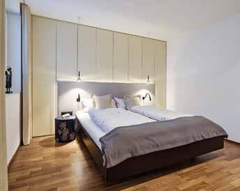 Für Erholungshungrige bietet das Val Blu mit seiner großzügigen Wellnesslandschaft einen idealen Rückzugs- und Entspannungsort. Ob in der Finnischen Sauna, im Dampfbad oder in der Panoramasauna – hier können Besucher dem Alltagsstress entfliehen und neue Kraft tanken. Der Außenbereich mit ganzjährig benutzbarem Naturbadeteich und mit beheiztem Infinitypool samt Sprudelliegen erstreckt sich auf rund 3.000 m 2 . Absolutes Herzstück ist die in Westösterreich einzigartige Teichsauna, die mit ihren 85 Grad passionierte Saunagänger ordentlich ins Schwitzen bringt und gleichzeitig einen traumhaften Ausblick auf die Bergkulisse des Rätikon und den weitläufigen Saunagarten erlaubt. Zwischendurch lädt das Sauna-Bistro mit seinem offenen Kamin, feinen Speisen und kühlen Getränken zu einem gemütlichen Abstecher ein.