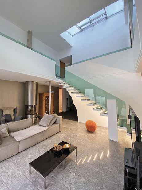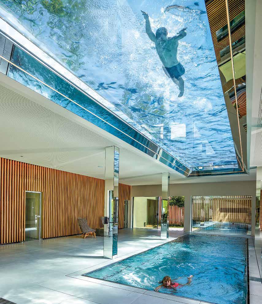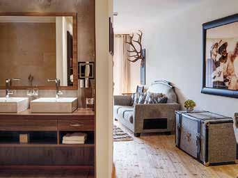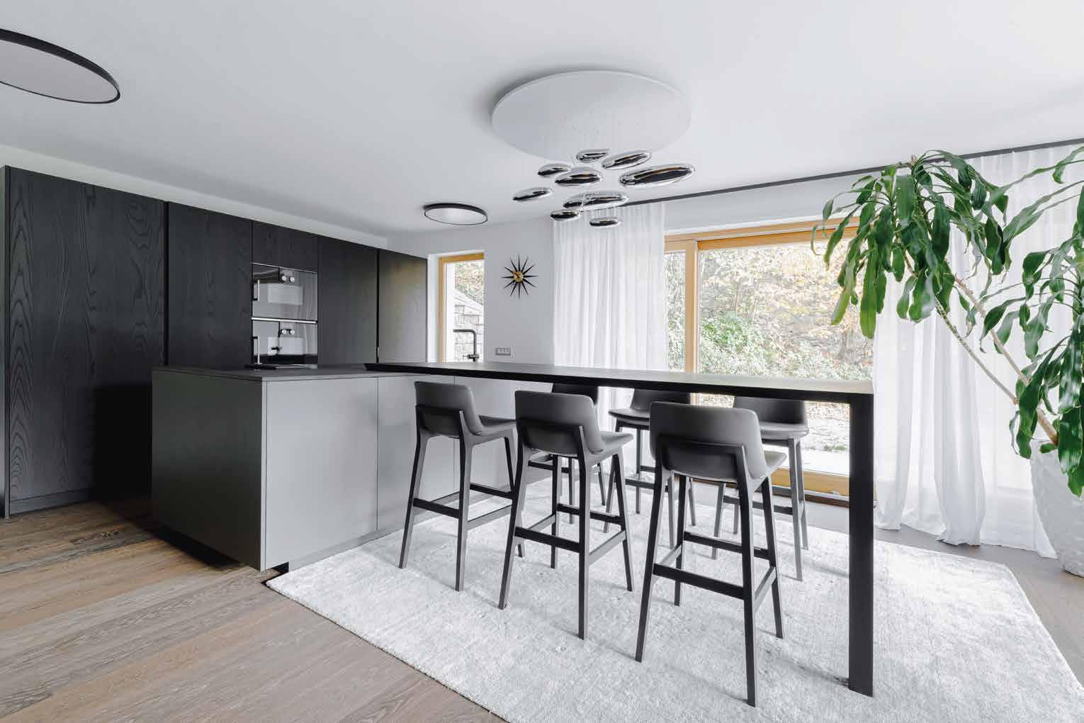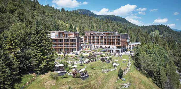 Gelungene Erweiterung. ArchitektJürgenKitzmüller samt Team hat auch im restlichen Gebäude Hand angelegt und eine neue Sockelzone mit Vordach über die ganze Gebäudelänge gezogen. Im Erdgeschoss ersetzt ein Zubau die alte Außentreppe, zusätzlich wurde ein direkter Zugang von den Privatwohnungen zur erweiterten Terrasse generiert und ein unterirdischer Verbindungstrakt zum angrenzenden Grundstück geschaffen. Im Untergeschoss bietet das erweiterte Raumprogramm nun sechs neue Personalzimmer, einen Skiraum, ein Kinderspielzimmer sowie Neben- und Sanitärräume.