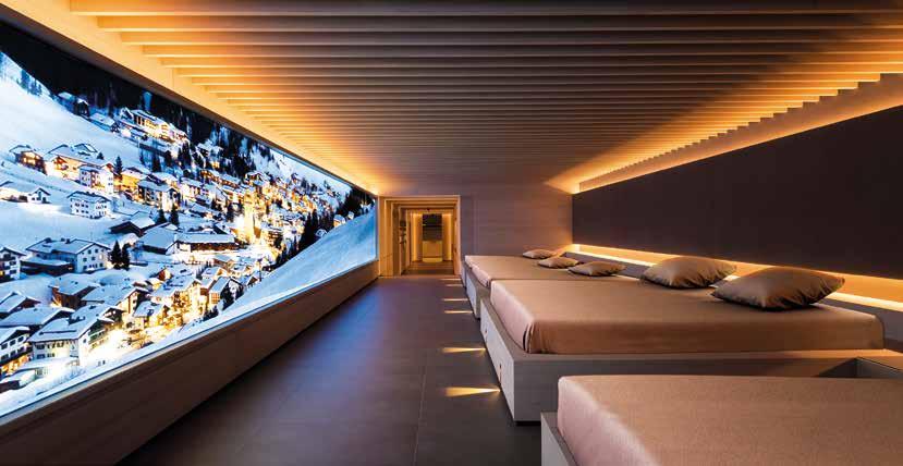 Nach einem Tag auf der Piste abends noch fein im neuen Saunabereich entspannen und in den Ruheräumen auf das funkelnde Lichtermeer von Lech blicken oder das prasselnde Feuer im offenen Kamin genießen. Der stimmige Umbau und die großzügige Erweiterung des Wellnessbereichs im Vier-Sterne-Hotel Arabell durch das Absamer Architekturbüro KITZMÜLLER macht es möglich. Es dominieren klare Linien und eine reduzierte Formensprache, die dem Gedanken nach Ruhe und Entspannung Rechnung tragen. Wenige, dafür hochwertige Materialien, ein ausgefeiltes Lichtkonzept und gedämpfte Farben vermitteln eine wohlige Atmosphäre.