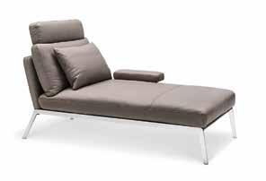 „Arena“ Daybed, „Stork“ Beistelltisch, und „Laze“ Loungesessel (alles von RODA)