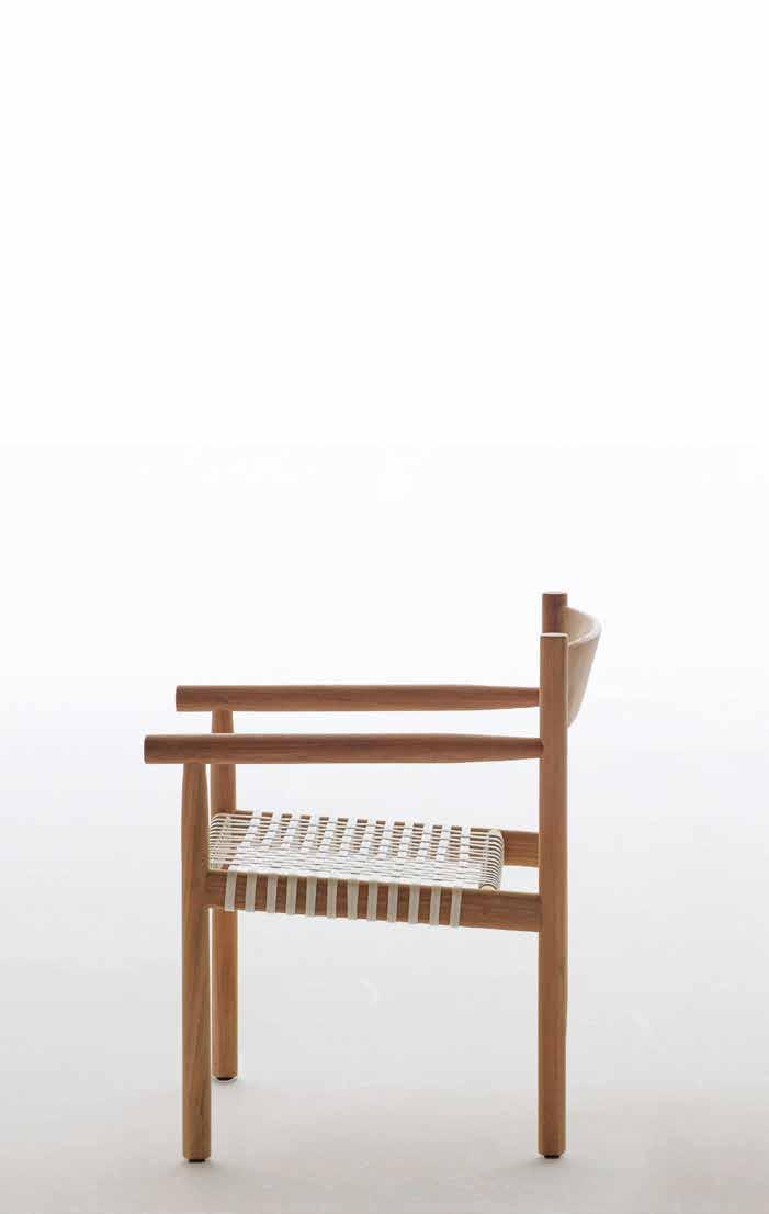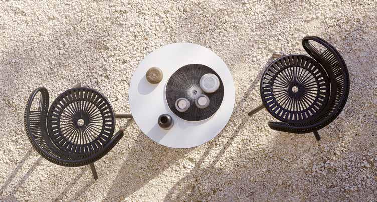 An das englische Wort „circle“ angelehnt, macht die Kollektion ihrem Namen alle Ehre: in der Sitzfläche befinden sich drei konzentrische Kreise aus pulverbeschichtetem Aluminium. Die inneren Kreise werden komplett durch die gewobene Faser getragen. Und passend zum Thema, wird man beim Sitzen durch die praktisch kreisförmige Rückenlehne umschlossen. Das kunstvolle, geometrische Muster, das Aisslinger gemeinsam mit Dedons Flechtmeistern auf den Philippinen entwickelt hat, breitet sich vom innersten Kreis ausgehend strahlenförmig in alle Richtungen aus.