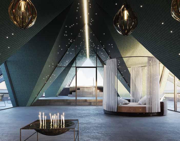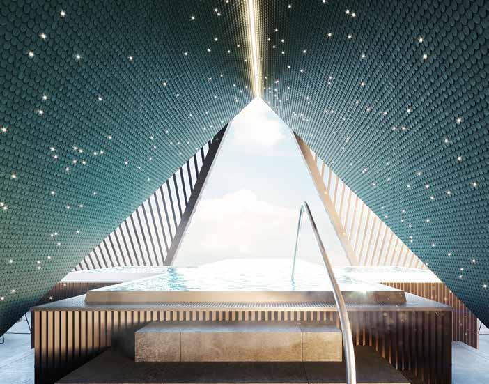 Well-Being. Ein Ruhe- und Relaxbereich mit Skypool thront über dem Gebäudeensemble und verspricht entspannende Momente. Eine neue Event-Erdsauna folgt im Frühjahr 2020 und wird zum Innehalten am pulsierenden Kern der Natur einladen. Alle 58 Suiten erhielten ein Facelift und am höchsten Punkt des Hotels entsteht die „Oh-My-GodSuite“ auf 65 m2 aus Stahl, Glas und Beton, aber auch mit viel Samt und Seide. Alle Hausgäste und externe Besucher erwartet ein besonderer Ort für ein Zusammentreffen. Das Stammhaus aus dem 17. Jahrhundert ist nun vom Keller bis in den vierten Stock geöffnet und fungiert ab Dezember unter dem Namen GAMS 1648 als Café, Pizzeria, Vinothek mit Shop, Blumen und Dekoration. Im GAMS zu zweit bleiben die Uhren ein bisschen stehen.