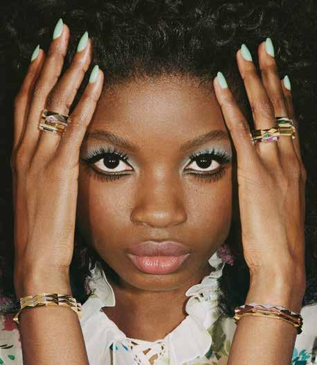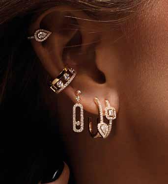 Valérie Messika setzt auf die moderne Form und manifestiert damit seit der Gründung Messikas einen wegweisenden Trend. Diamond Stacking am Ohr, Mix & Match von Halsketten in unterschiedlicher Länge und Größe, Armbänder und Ringe in allen Variationen.