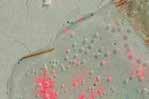 Am Anfang habe ich alles verklebt vor mir gesehen. Die Kriegserlebnisse der Eltern noch in den Knochen, fühlte sich die Welt für mich verkrustet und verklebt an. Jetzt, durch die intensive Beschäftigung mit dem fluiden Werkstoff der UHU flinken Flasche und den größer werdenden Naturleinwänden, bei denen ich nicht mehr so locker alle Flächen leicht erreichen kann, entdecke ich luftige Spielräume zwischen Himmel und Erde.