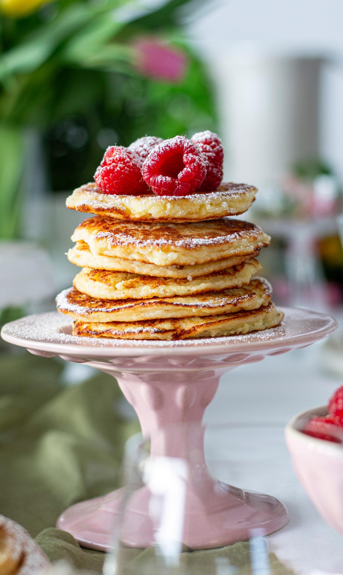 OPTIONAL: Auch mit Zimtzucker schmecken die Topfen-Grieß-Pancakes hervorragend. Dazu 3 bis 4 EL Wiener Feinkristallzucker mit Zimt verrühren.