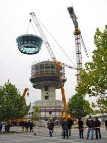 Am 24. oktober 2001 wurde die Kuppel auf den neuen tower gehoben. Noch rund ein Jahr sollte es bis zur Gesamtfertigstellung dauern.