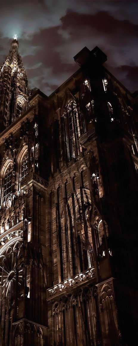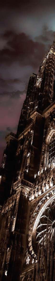 Menschen, die prahlen, sagt man gerne einen Minderwertigkeitskomplex nach. Wie ist das nun mit Städten? Straßburg nennt sich Weih nachtshauptstadt, Fahrradmetropole Frank reichs, besitzt das längste Straßenbahnstreckennetz Frankreichs, stellt alljährlich den größten Weihnachtsbaum Frankreichs auf, die gesamte historische Altstadt Grande Île ist UNESCO-Welterbe Aber warum, bitte schön, hat das Straßburger LiebfrauenMünster, die grundsätzlich imposante Cathédrale Notre-Dame, nur einen Turm? Mit dem sie noch dazu ziemlich asymmet risch aussieht? Tja, die Liebe zum Superlativ wurde bereits im Mittelalter in die Chroniken der Stadt eingeschrieben: Auch heute noch ganz offensichtlich hätten es eigentlich zwei Türme werden sollen deshalb diese irritierende „Imbalance“ Der Bau-