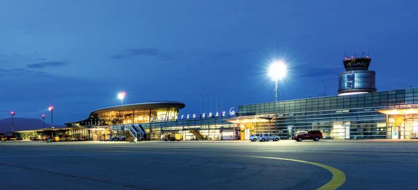 aus einem mehrstufigen Bewertungsverfahren als Sieger hervorgegangen ist. Heute stehen Wolfgang Grimus und Jürgen Löschnig, die Geschäftsführer des Flughafen Graz, vor dem Tower und blicken anerkennend in den Himmel: „Der Tower des Flugha fen Graz ist innerhalb kürzester Zeit nicht nur zum Wahrzeichen des Flughafens, sondern zu dem einer ganzen Region gewor den und ist daher so viel mehr als ein rein funktionales Gebäude. Nach 20 Jahren ist er immer noch modern, was seiner klar und einfach gehaltenen, optisch ansprechenden Architektur zu verdanken ist“. Im da runter liegenden Gebäudekomplex befin-