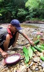Am nächsten Tag geht es auf Entdeckungstour entlang von Feldern und Gemüse gärten in den Dschungel bis zu einem glas klaren Fluss mit Wasserfall, Gratisdusche inklusive. Für das Mittagessen am Fluss tra gen wir alles im Rucksack mit, der Reis wird traditionell in Bambusrohren gekocht. Willkommen in dieser einfachen, aber nachhaltig lebenden Welt