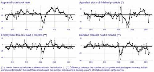 Les facteurs conjoncturels défavorables prennent de plus en plus clairement le dessus par rapport aux facteurs favorables et les entreprises de nos secteurs perçoivent la situation conjoncturelle comme clairement négative. On ne doit pas anticiper de redressement de l’activité dans les prochains mois.