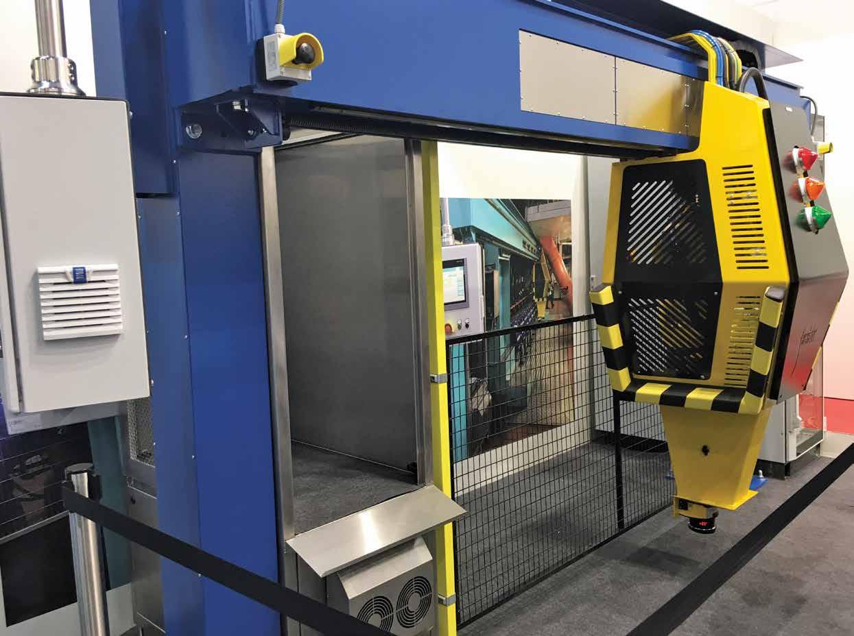 Met een Stäubli robotarm aangepast door CNC Solutions, worden baden automatisch bewerkt.