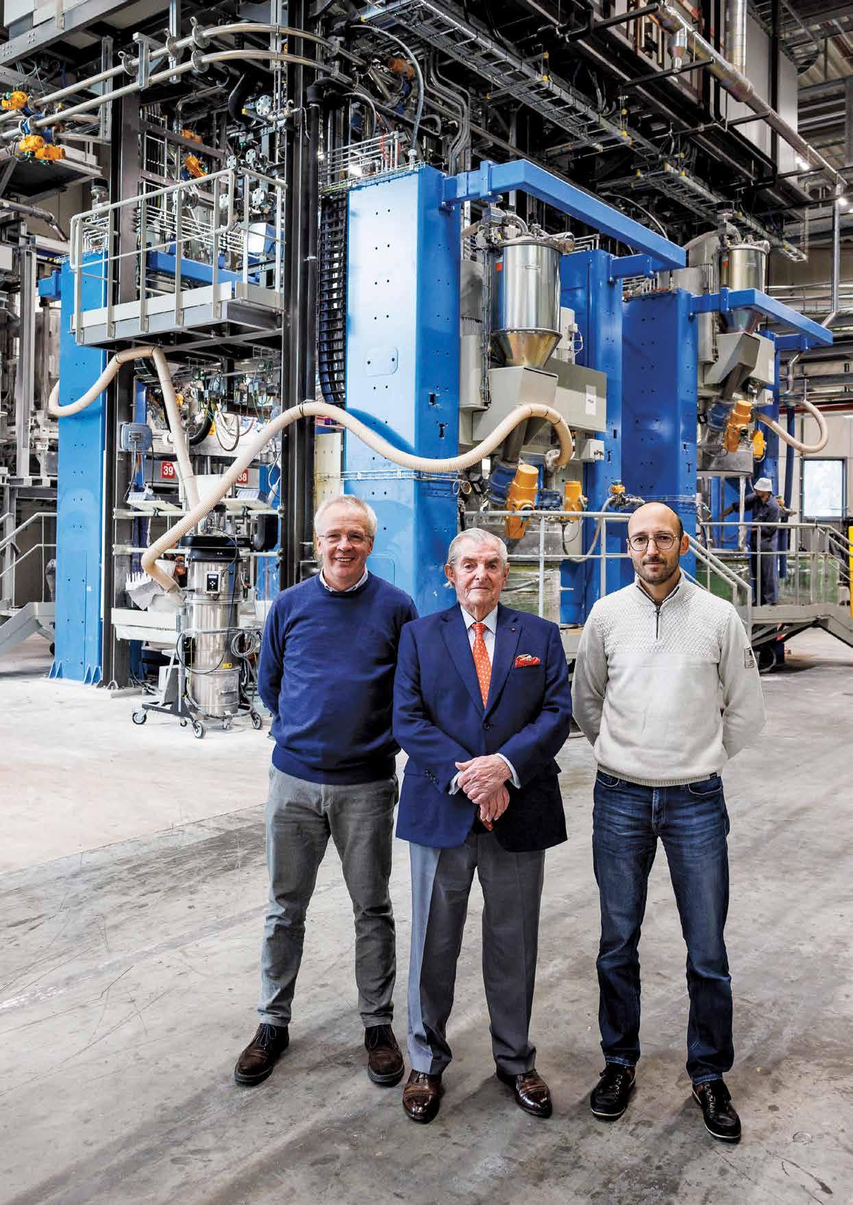 Lors de notre visite de la nouvelle usine de production, nous avons été accompagnés par Vic Swerts, président, Peter Bruggeman, responsable ingénierie du groupe Soudal, et Marco Huls, responsable automatisation du groupe Soudal. L'usine regorge de solutions innovantes, dont beaucoup ont été développées en interne et adaptées aux propriétés spécifiques