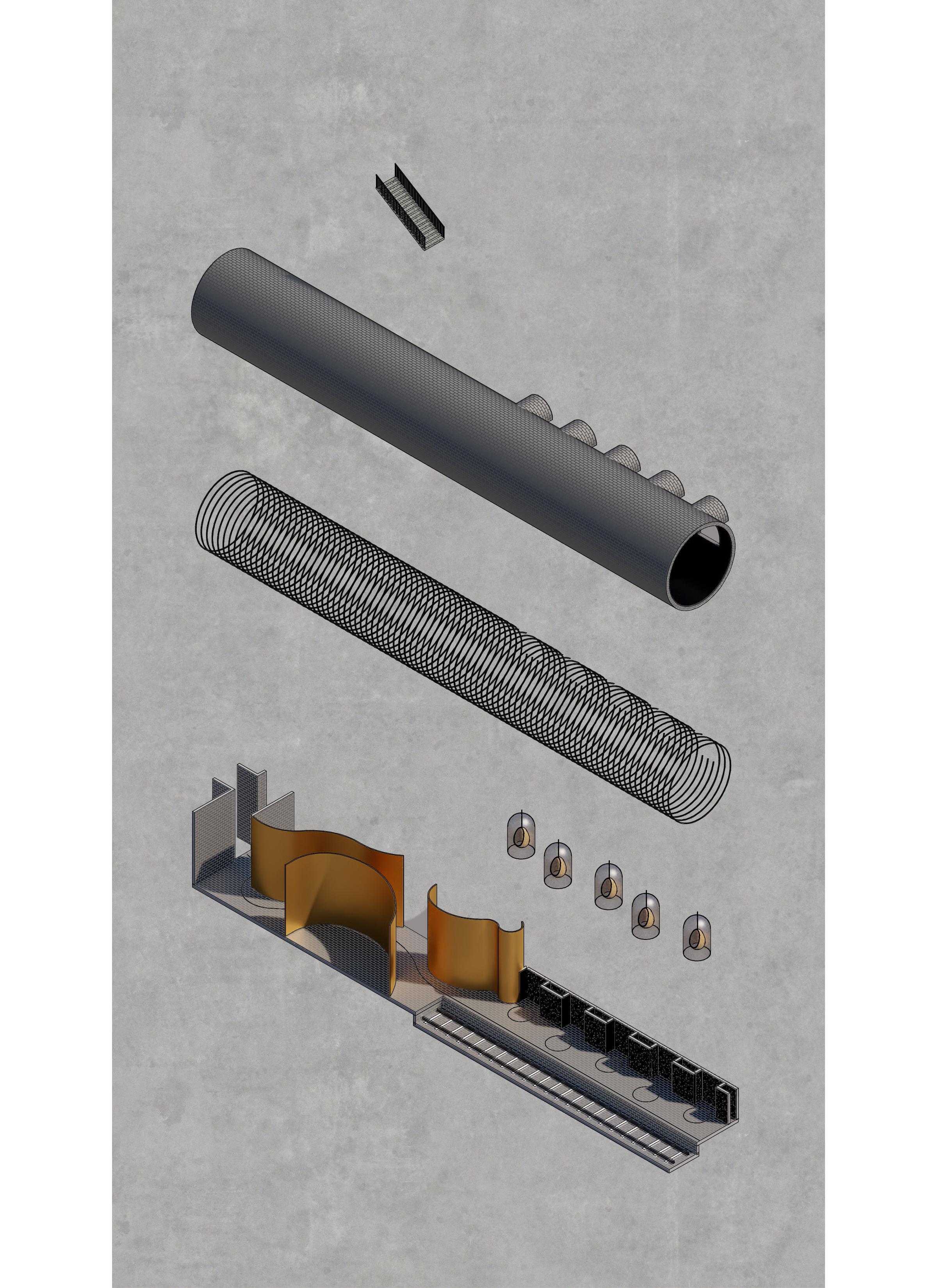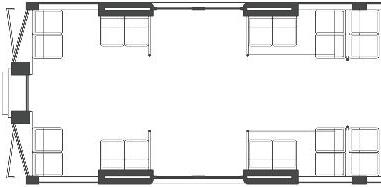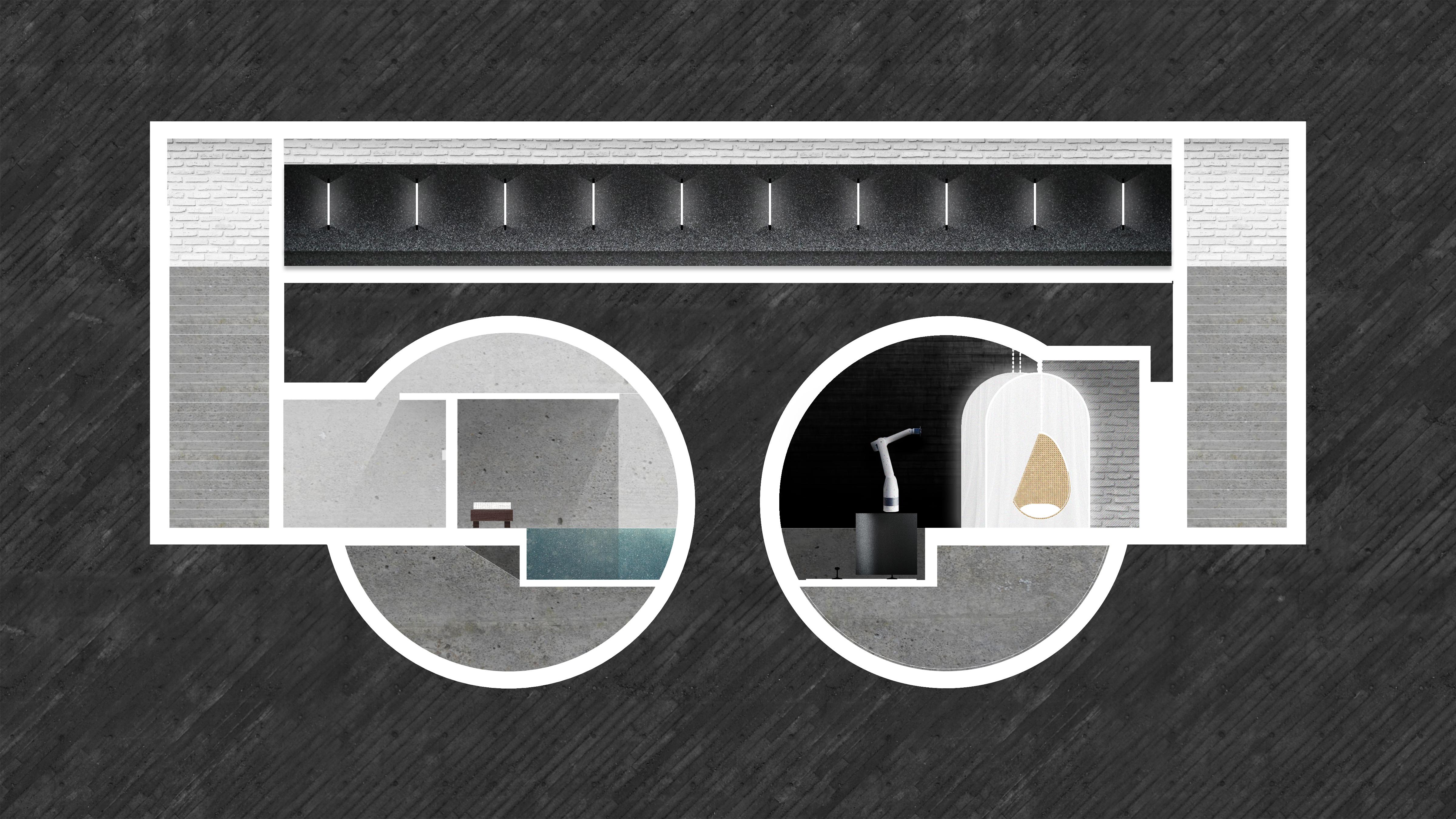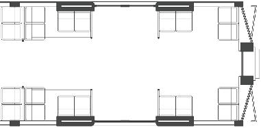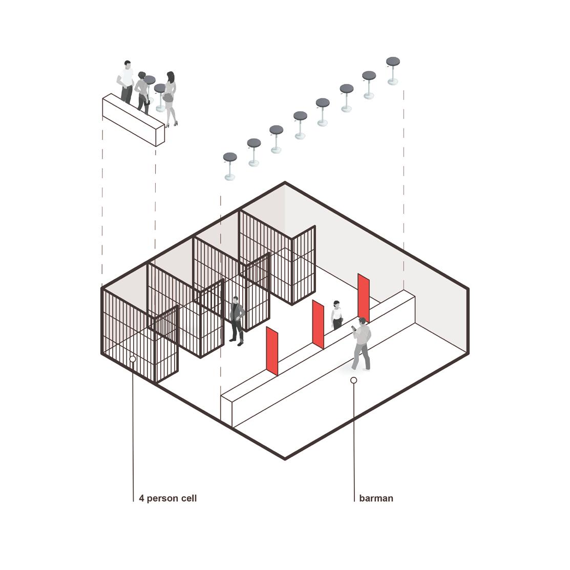This particular layout was unsuccessful at allowing di ferent groups within the space to intermix with eachothe Disrupting this geometry with diagonal lines in plan may help to break up the space and cause more social interaction. The space is intentionally broken up like this to portray a certain feeling-- that of a cold, stale prison cell. It successfully does so.