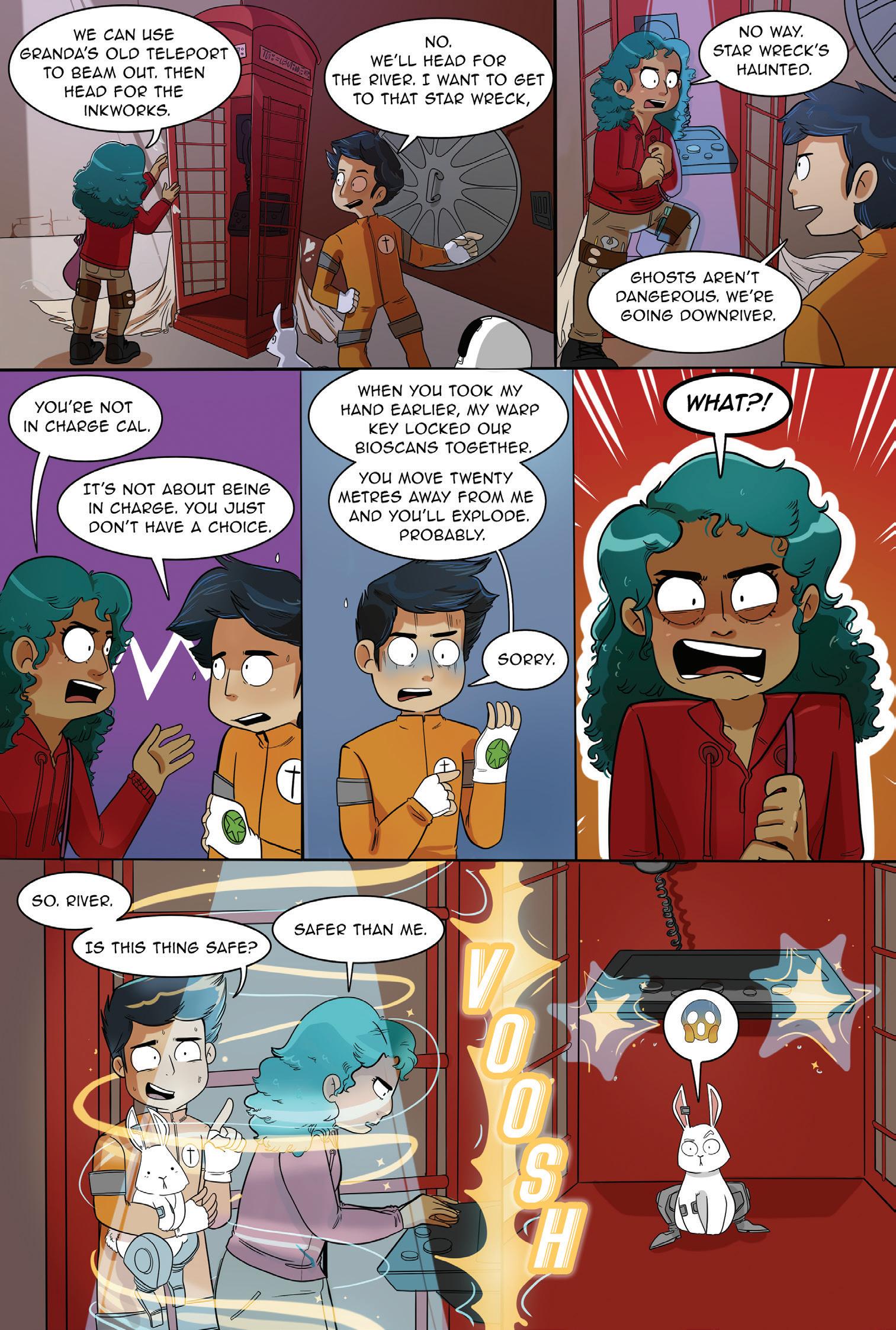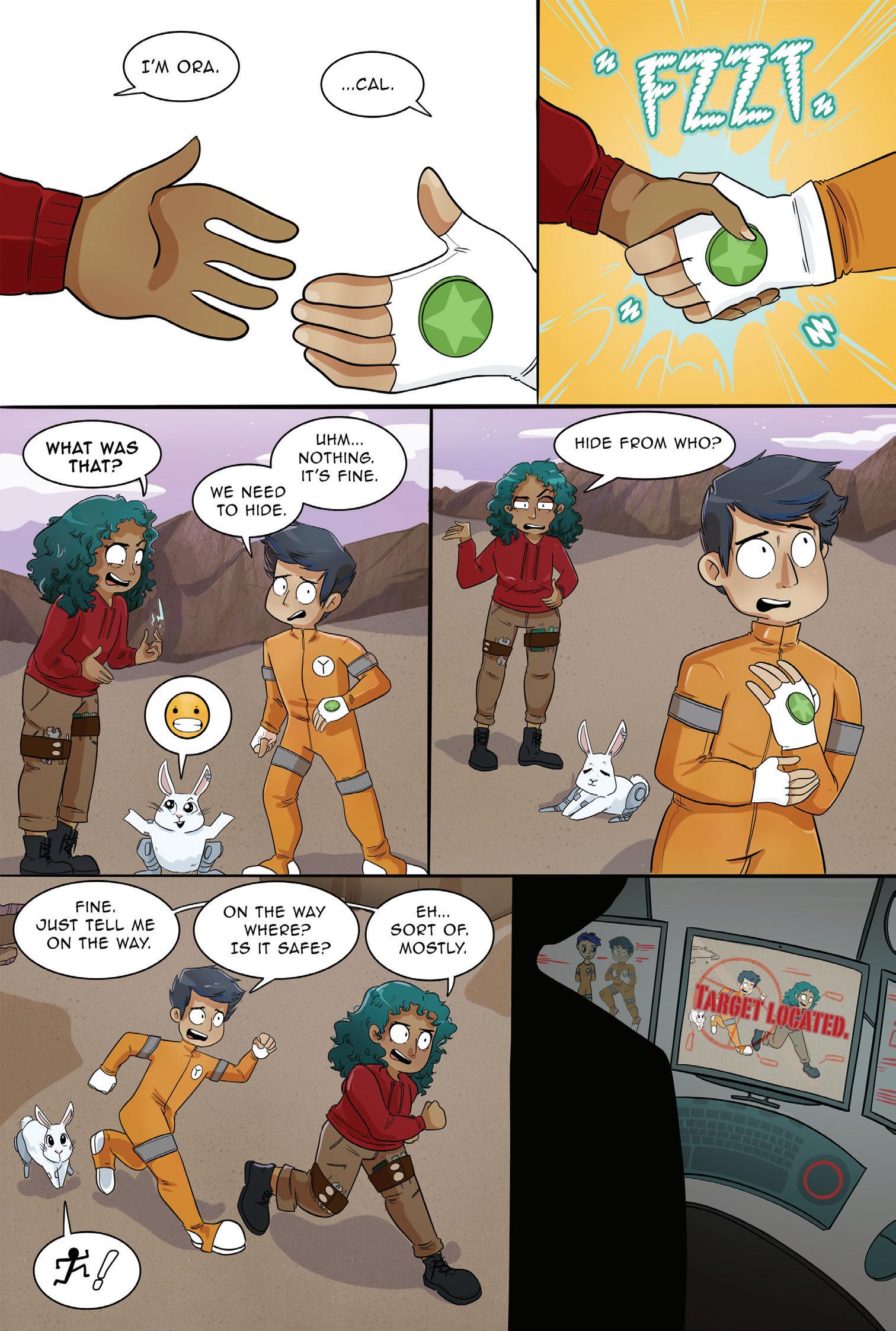 When Cal and his Cyborg Bunny Har-V crash land on Ora's planet, she decides to help them hide and ends up on the run from an evil corporation. But Ora has secrets too, and Cal is about to discover how much they need each other...