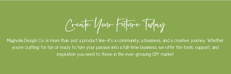 Magnolia Design Co is more than just a product line- it’s a community, a business, and a creative journey. Whether you ’ re crafting for fun or ready to turn your passion into a full-time business, we offer the tools, support, and inspiration you need to thrive in the ever-growing DIY market