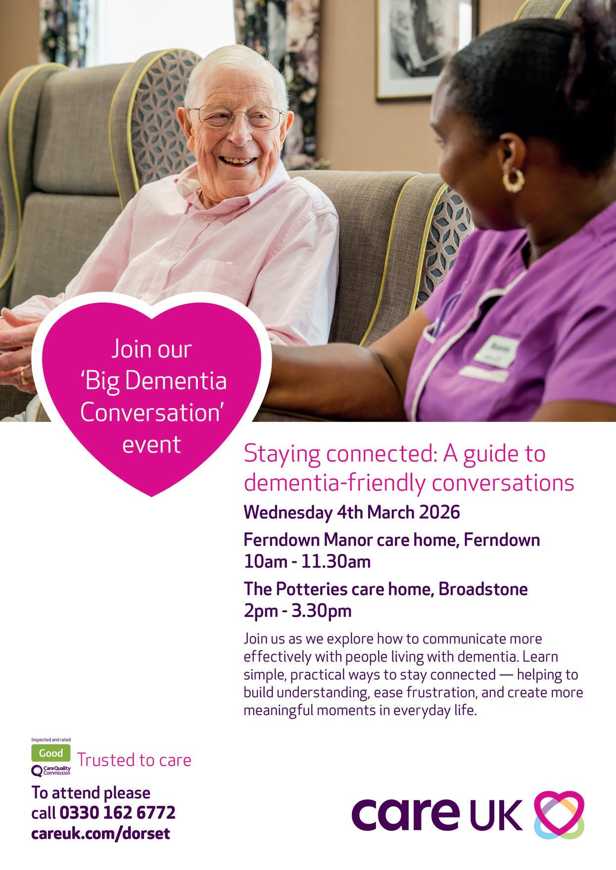 And for older readers, there is a free Home Library Service for those unable to leave their home or travel to the library. If you or someone you know is housebound, in sheltered accommodation, or in a residential or nursing home, a friendly team can deliver books, audiobooks, and DVDs every few weeks, and collect them again. Speak to staff in West Moors Library to apply. Phone 01202 873272 or email westmoorslibrary@ dorsetcouncil.gov.uk.