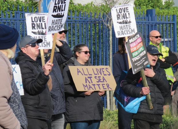 A large counter-protest was organised by campaign group Stand Up To Racism and attended by supporters of the RNLI, as well as local politicians including the MP for Mid Dorset and North Poole, Vikki Slade.
