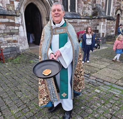 Wimborne Minster’s Rev Canon Andrew Rowland practises his pancake flipping ahead of the annual Wimborne Minster Pancake Race on Shrove Tuesday 17 February. Competitors of all ages ran around the Minster, tossing their pancakes at the four corners of the church.