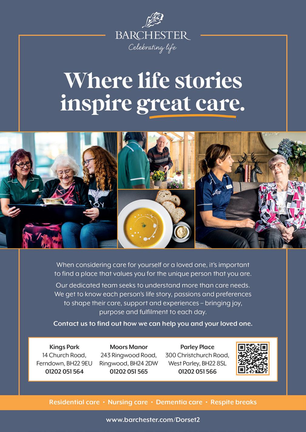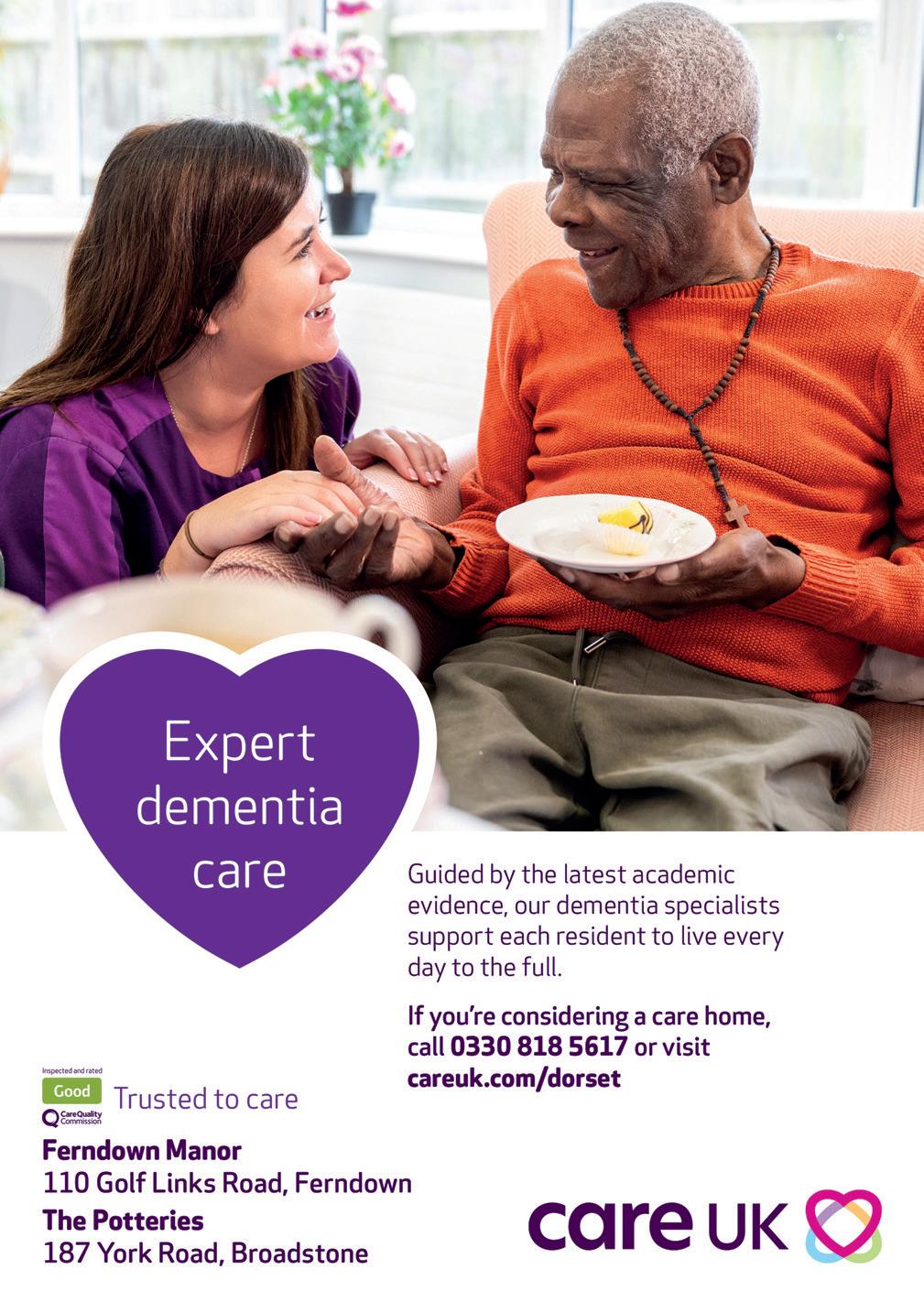 Here in Dorset, our closeknit communities play a huge part in supporting people affected by dementia. Alzheimer’s Society — the UK’s leading dementia charity — offers trusted support, advice and hope to families, while funding vital research and campaigning for better understanding across the country.