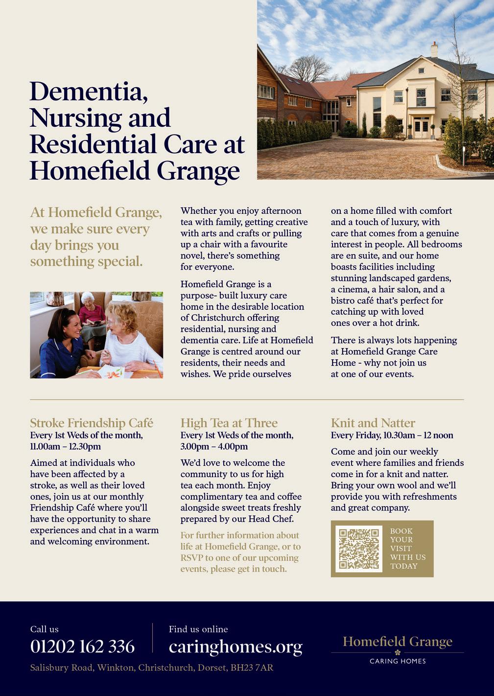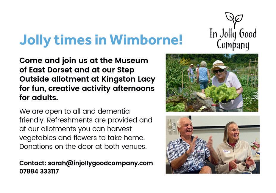 Please visit the Dementia Awareness/Services section and One-Off Events section of our What’s On guide in this edition. Signposting events and activities are happening across Corfe Mullen, Ferndown, West Moors and Wimborne so do take a look.