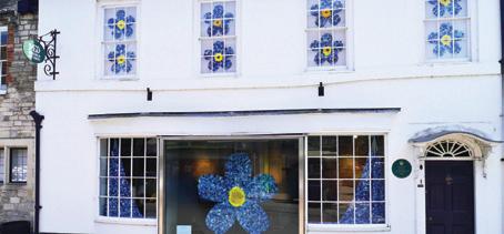 Also for Dementia Action Week, the Museum of East Dorset covered all its windows with forget-menots, over 9,000 individually knitted and crocheted, large and small, mounted together as collages and flowing shawls. Forget-me-nots were produced by people from as far away as Glasgow and Lancashire. The initiative came from MED volunteer Sally Palmer who helps with the innovative Reminiscence outreach project, whereby evocative museum artefacts and exhibits are used to stimulate memories for elderly people and especially those living with dementia. For more detail about the project and the dementia-friendly