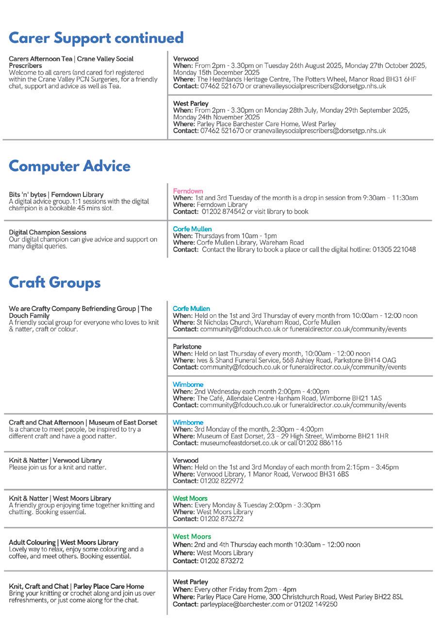 Crane Valley Network cranevalleypcn.org/ Poole North PCN northconnectpcn.nhs.uk/social-prescribing/ Wimborne and Ferndown PCN pennyshillpractice.co.uk/about-us/pcn/