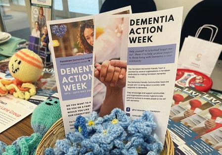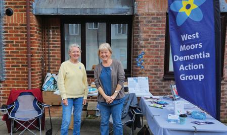 The Dementia Action Week in May we had an information stand on Station Road, our main shopping street, with many good conversations, handing out much literature - plus free cakes, courtesy of Brook View Residential Care Home. Our table also had on it one of our new collecting boxes which many noticed and wanted to make a donation. We are grateful too, to the many shops and businesses in West Moors, more than 25, for willingly also having a collection box on their counter during the month of May. Thank you to our amazing shops and businesses for supporting what we are doing and helping to make West Moors dementia friendly. This will certainly make a positive difference to what we are able to do for our community. By the time this edition is published we will have just had WESTIVAL, a family fun day in West Moors, where we hope to connect with many more people and assist in pointing then to the help and support they need. In September we are hoping to launch a new activity - Art for Dementia, but are in the process of