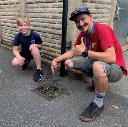Primary school in Poole designed the artworks to encourage their fellow students to look down and consider what happens if their litter gets washed down the drain.