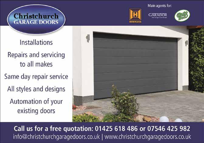 14 14 Garage doors and awnings Up and over • Roller • Sectional • Side hinged Any size, style and colour Electric or manual • Supplied and fitted Repairs and service Rear of 98 Ashley Lane, Hordle, Lymington SO41 0GA 01425 618636 www.advanceshutters.co.uk Advance Shutters Ltd Visit our showroom £100 off any new garage door when you mention this advert OFFER