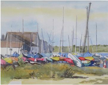 The winning painting was ‘A Jumble of Boats’ by Cathy Collins, a beautiful watercolour featuring Mudeford Quay.
