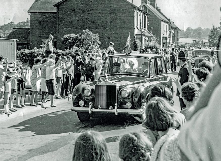 1969, The Queen and Prince Philip riding the wrong way along Station Road in a Rolls Royce, presumably returning to Wimborne Station after opening Poole Hospital.