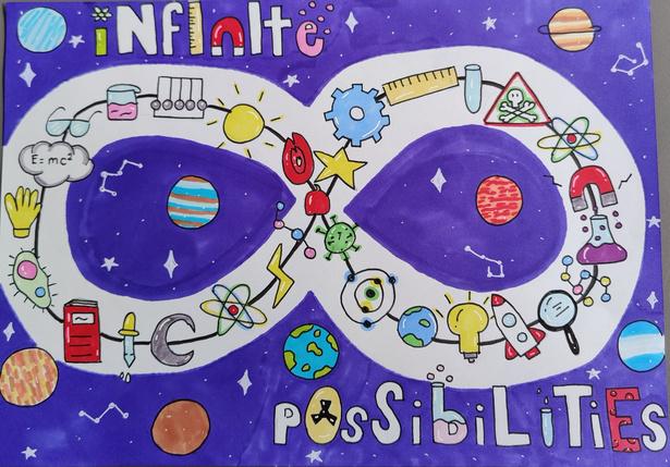week including the Devastatingly Dramatic Climate Show with Scientific Sue and the Creepy Creatures with Dr. Dunbar . Different year groups participated in quizzes and events, advancing their knowledge on science and the world around us. There was also a poster competition open to all students focusing on the theme “Infinite Possibilities”, where winners received an amazing drinking bird similar to Albert who lives in G22! As part of Science Week, the Exploration Dome visited the school last week and all 2nd years got to see some shows. These covered the constellations, a journey into the human body and investigating whether life exits elsewhere in the Universe.