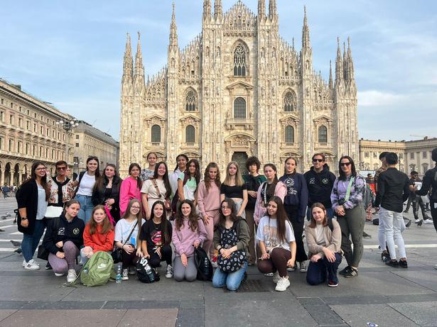 My name is Bláthnaid Carroll and I'm in Rang Naoise in 3rd Year. I was lucky enough to take part in the Italy exchange this year. This was my first time going on holiday outside of Ireland and it was definitely the most memorable time ever! I really enjoyed this trip. I met so many new people, tried new foods and overall had the best time. My favourite part of the trip was meeting our pen pals. They were all so lovely and fun. I can't wait to see them all again when they visit us in January. I loved seeing different landmarks in Milan, especially the Duomo, which is a really big cathedral in the main square. It was so beautiful in real life. We also visited a Gelateria and had real Italian gelato. It was delicious, along with the pizza! We went shopping too in the Arese shopping centre in Milan. All the shops were so good. We also took a day trip to Lake Como and went on a boat trip. During our trip to Italy, we spent 2 days in our pen pals' school! We went to classes with them. Their school was really different to CB. I would love to go back to Italy, and I can't wait for our new friends to come to Ireland. Thanks so much to our teachers Ms. Whearty, Ms. Walsh and Mr. Flynn for bringing us on this trip and for this memorable experience.