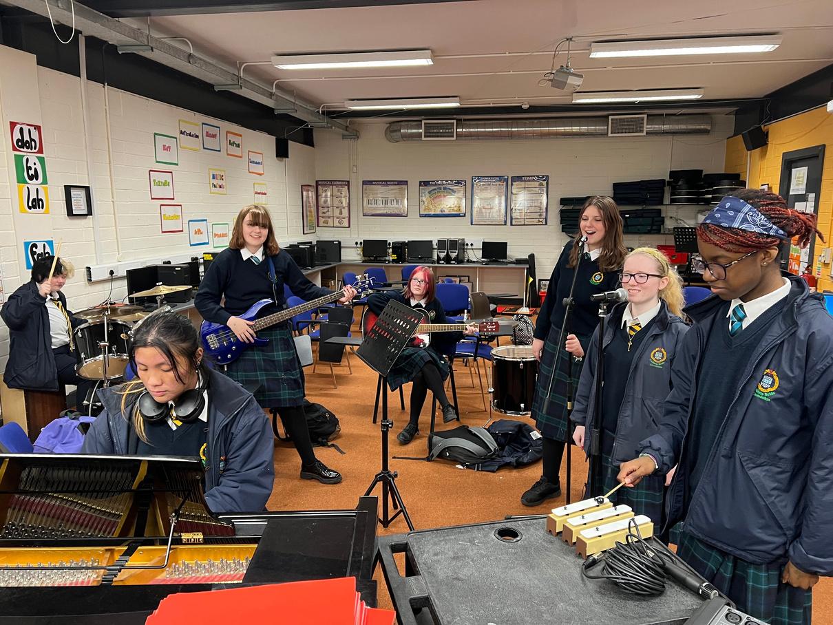 In Suburban Sounds, a group of us students have been composing and playing songs over the last few weeks. Some of us sing, play guitar, bass, glockenspiel, or drums. We meet each Wednesday to share ideas and practice our music, and eventually, we will record our songs in a studio. In a week or two, we will be playing one of our songs in front of the school in the Christmas Concert. It's an exciting opportunity for those of us that want a career in music, or even for those of us who simply enjoy creating something. It's not something most students would have the opportunity to do, and so far, I've really enjoyed Suburban Sounds!