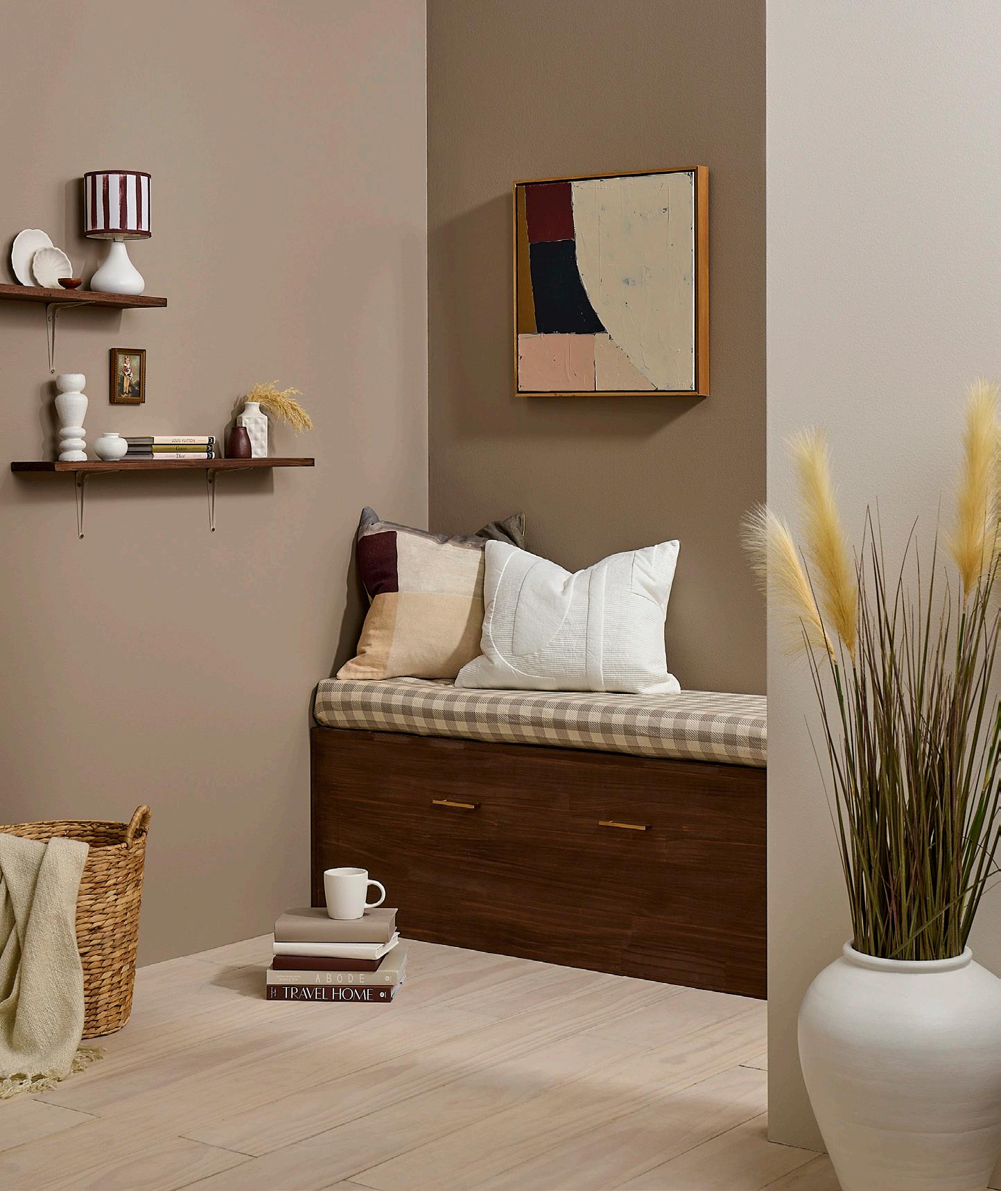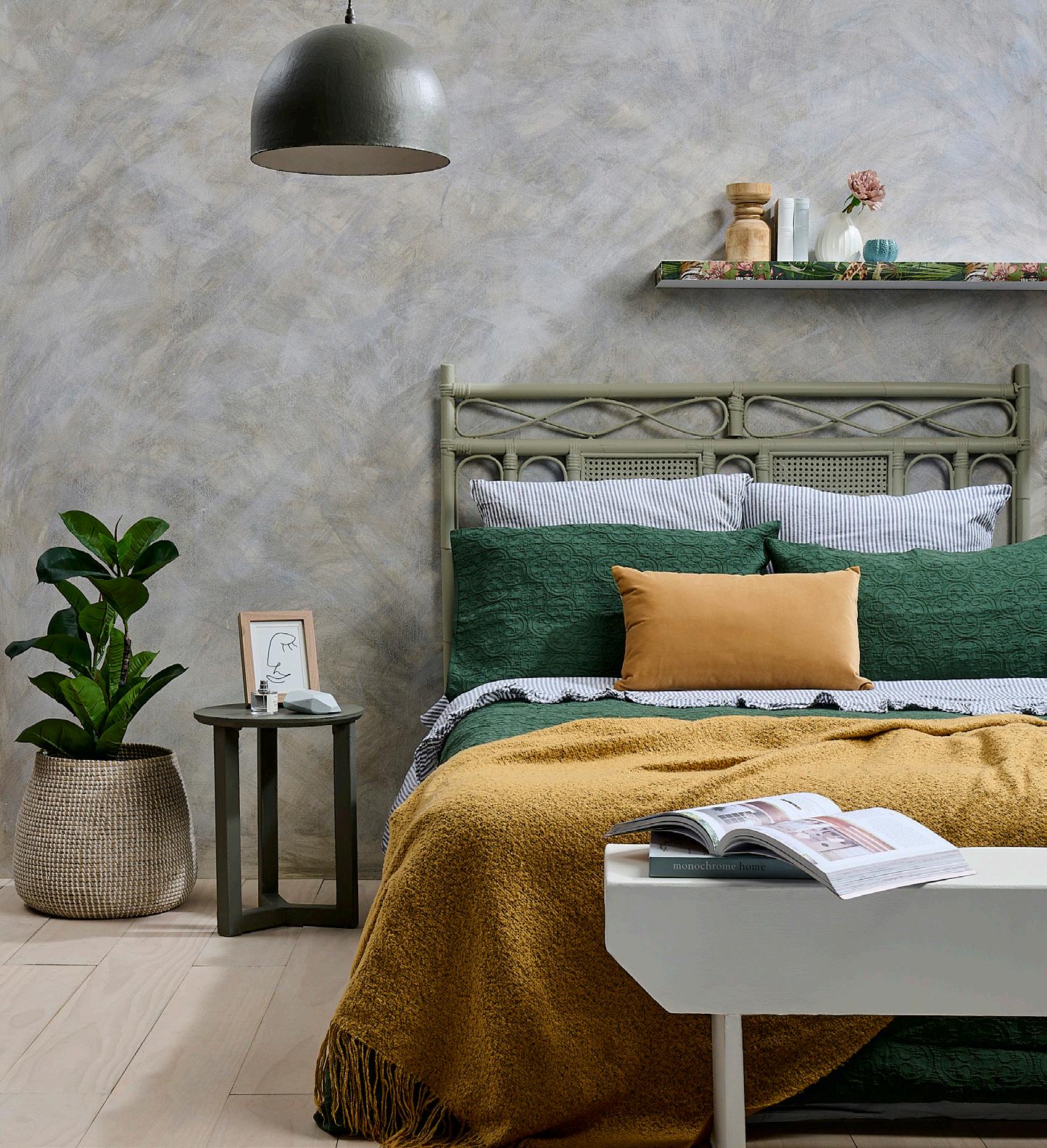 Use rich, dark colours for the walls; smoky greys, warm mustards and cosy browns. These colours should envelop you in one cosy, big hug. If you’re not in a rush to remove your white walls anytime soon, consider floor-to-ceiling curtains around your walls and windows to add that cocooning effect and block out light, without compromising on personal style.