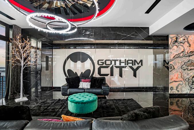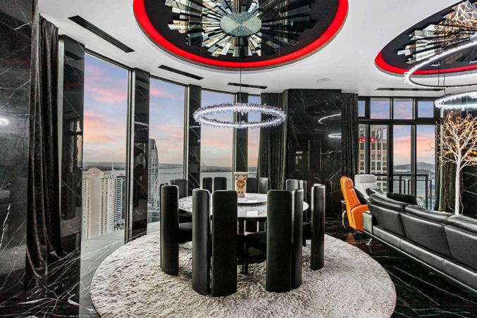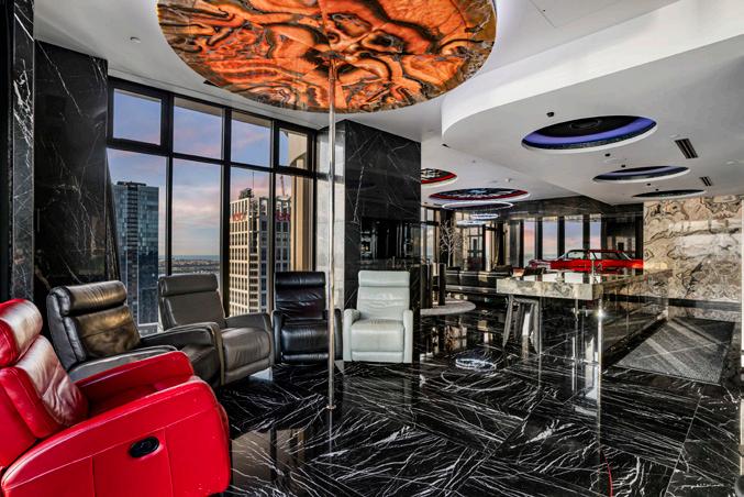 Designed with avant-garde flair, the interior features soaring ceiling heights, floor-to-ceiling Italian tiling, and striking Onyx paneling, reflecting a modern and sophisticated aesthetic.